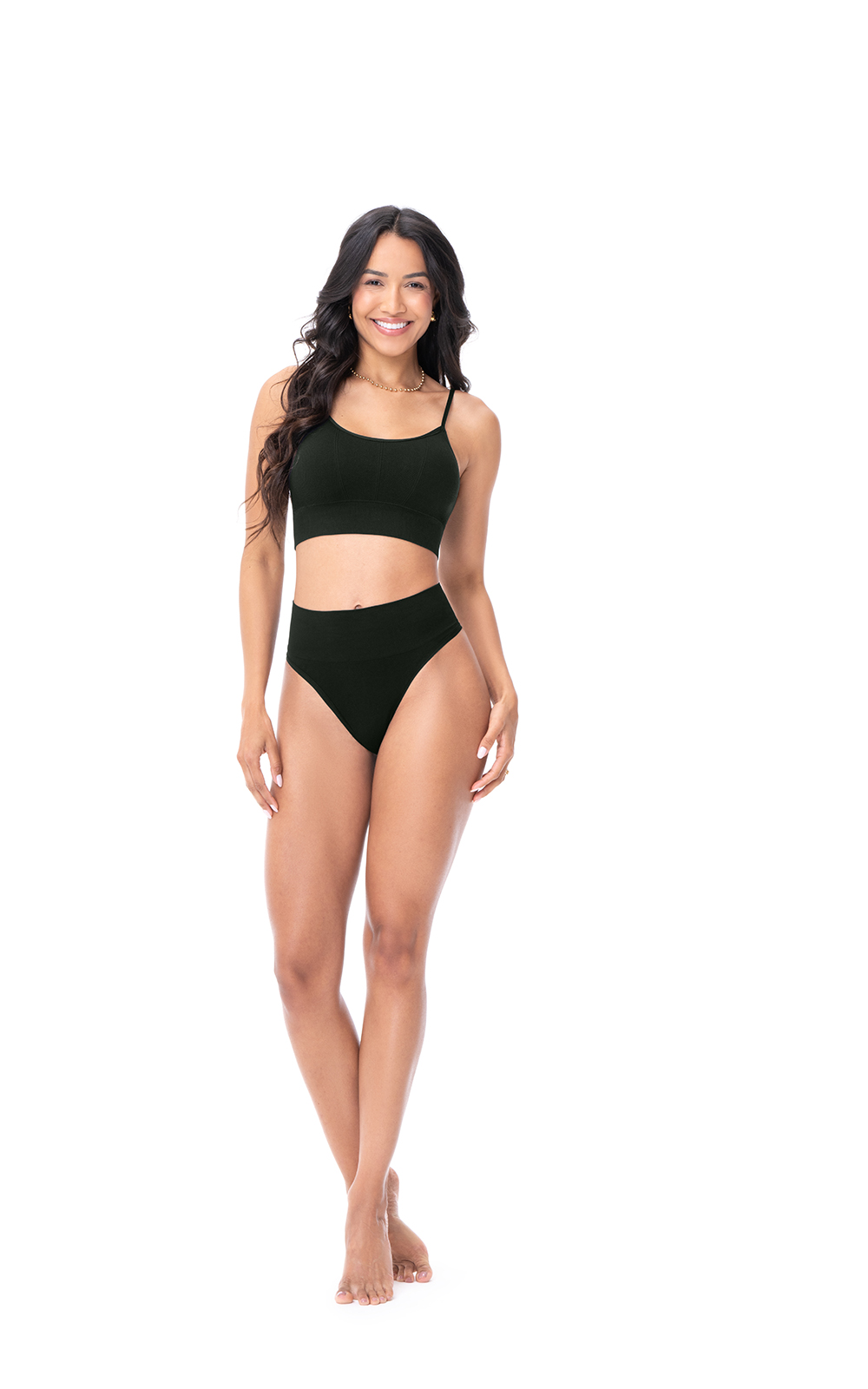 Na parte de trás, o modelo é fio dental (não indicado para usar com absorventes ou calcinhas descartáveis). Com o cós mais alto (8cm), proporciona mais conforto além de comprimir levemente a região abdominal, trazendo mais segurança no seu dia a dia e deixando a barriga mais firme sem incomodar.